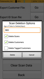 Note: To clear all scans and customers ensure “Delete Scans” and “Delete Customers” options are checked.