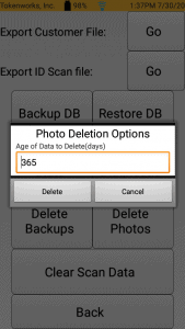 I.E – Entering 365 will delete any Scans/and or Customers older than 365 days.