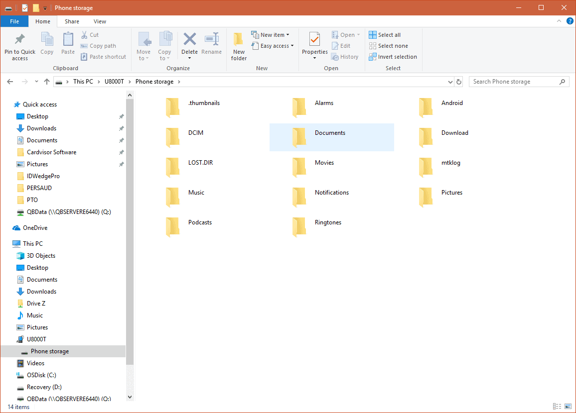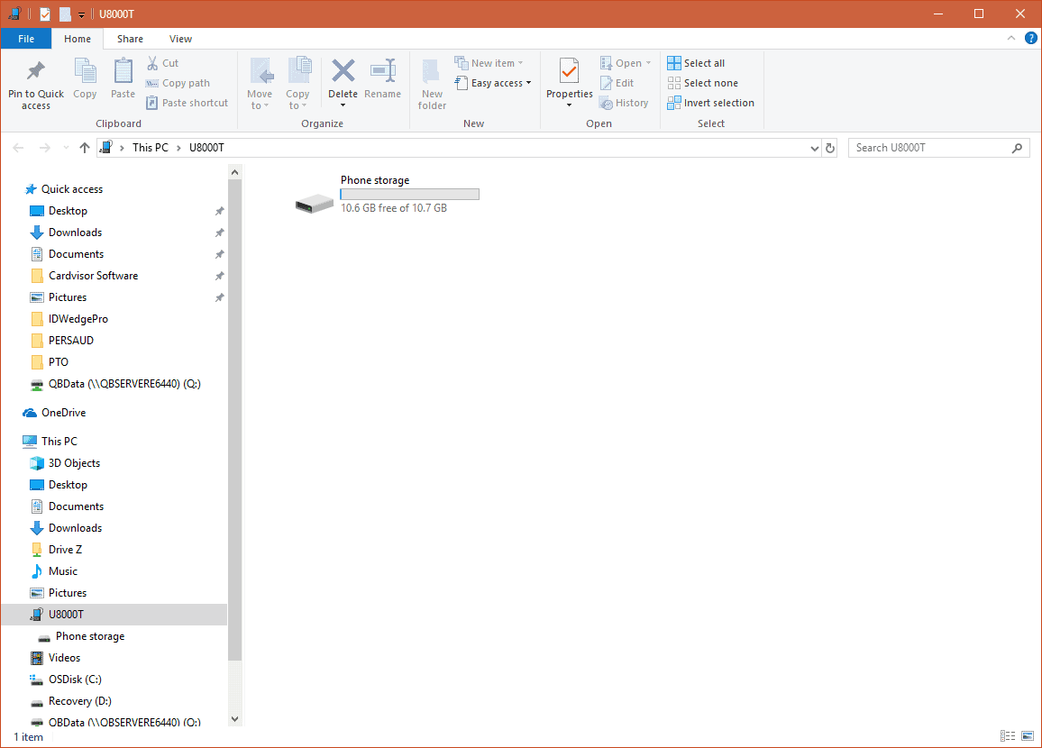Once connected the device will appear in File Explorer as an U8000 or U9000 (Smart Plus) device. The contents of the device will be in Phone Storage.